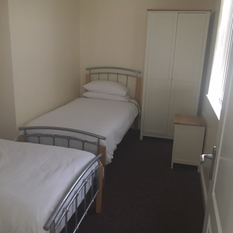 The two comfortable bedrooms—one double and one twin—ensure a restful stay, with a modern bathroom and enclosed shower unit.