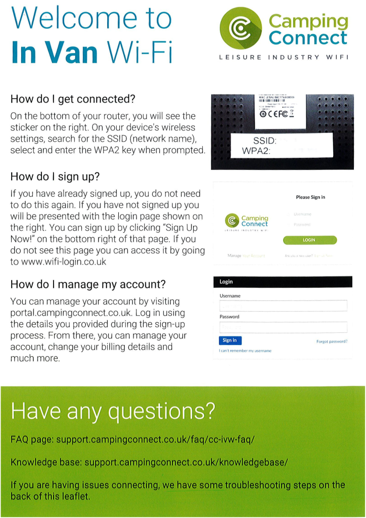To find out more or to arrange installation, please contact Camping Connect directly using the details below.
