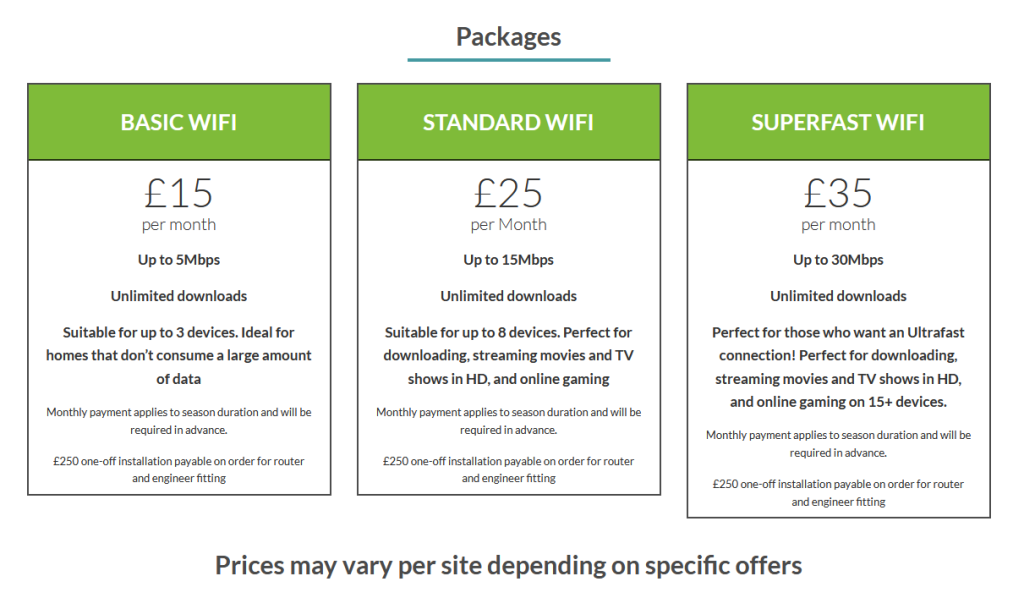 For caravan owners wishing to arrange Wi-Fi, the service on park is provided directly by Camping Connect.